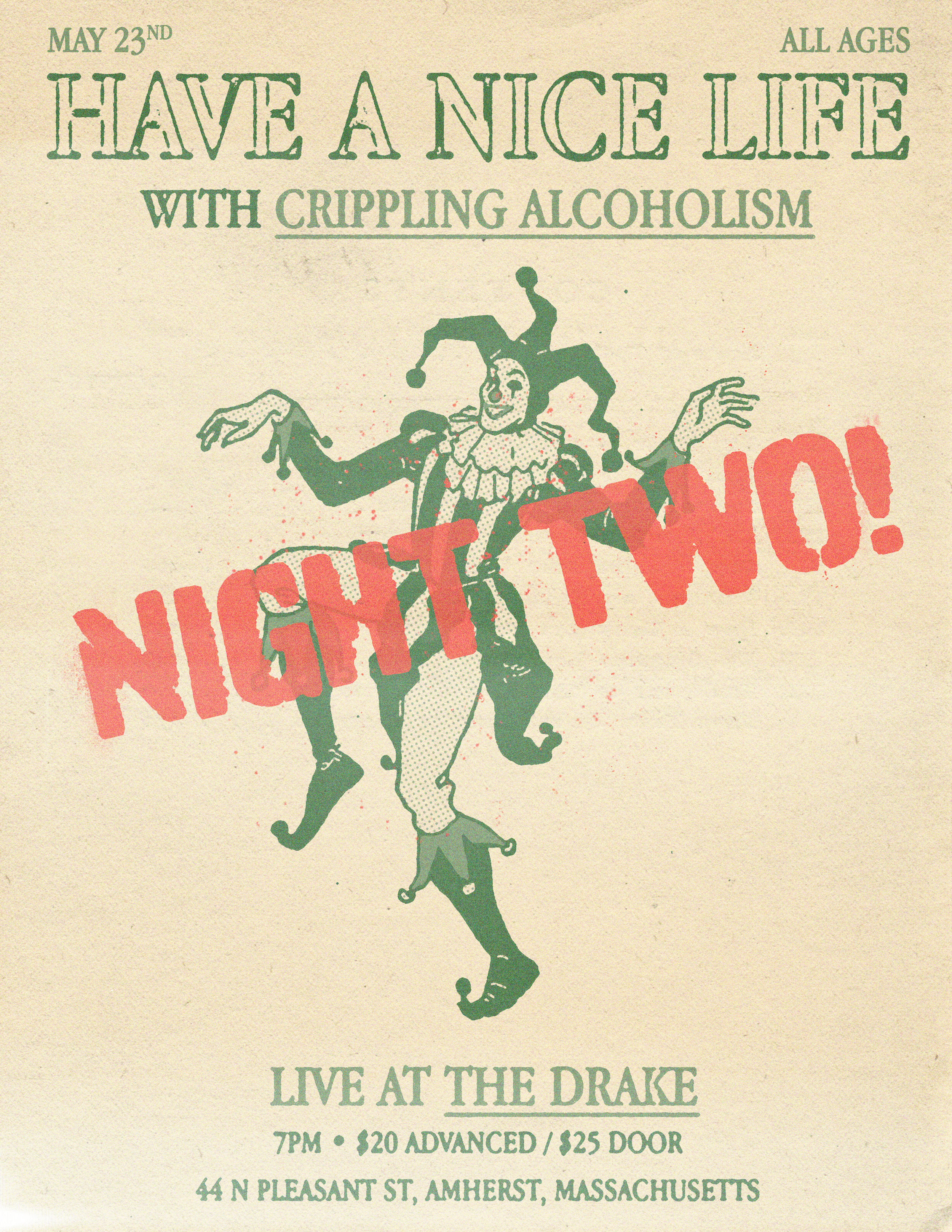 Have A Nice Life formed in the early aughts when its two primary members, Dan Barrett and Tim Macuga, were studying at the University of Massachusetts. With the aim of crafting "oddly aggressive acoustic songs," the duo spent five years constructing their debut LP Deathconsciousness, a 2008 release that rippled across the post-punk landscape. Now hailed for its anguished subject matter and unwaveringly lo-fi production, Deathconsciousness is considered an experimental cornerstone.