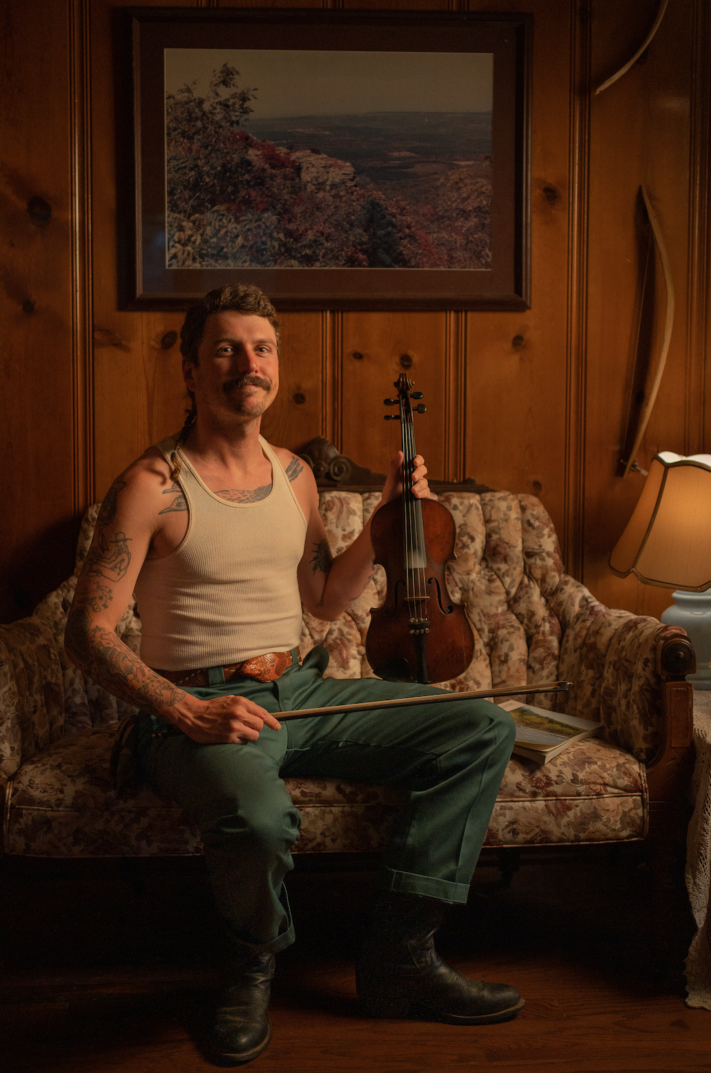 Surrounded by a singing style passed down from a time before microphones, Nick’s childhood of birdcall whistles and an over-exposure to southern gospel music eventually steered him toward an adolescence drumming for metal and punk bands, and subsequent years as an active illustrator and member of Arkansas’s heavy music scene. After numerous personal calamities and a growing obsession with the rural musical traditions of his lifelong home, Shoulders left the Ozarks and lived out of his van, singing on the street corners of the west while slowly being drawn to the vibrance of the New Orleans dance and busking world. Following the release of ‘Rather Low’ by the popular YouTube channel Western AF, which catapulted Nick’s songs to a vastly wider audience right as Covid-19 and lockdowns ensued, he’s seen rapid ascension into the world of touring music, playing alongside the likes of Sierra Ferrell and at major festivals such as Stagecoach. With the hard rhythms and heavenly melodies of the newest release, All Bad, Shoulders manages to concoct a body of work that is at turns sublimely freewheeling and profoundly illuminating, yet primed to permanently warp the listener’s perspective to glorious effect.