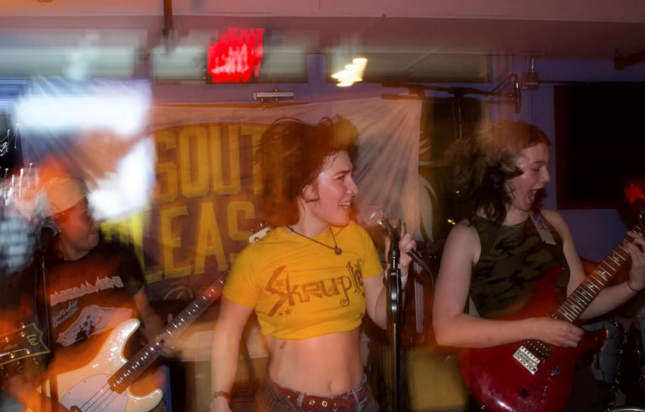 Skruple is an Amherst-based afab rock band. Members include Ahna Frede on vox, Syd Chuang on bass, Ceci Carry and Anya Lu on guitar, and Claire Neville on drums. They love making good music and good vibes!