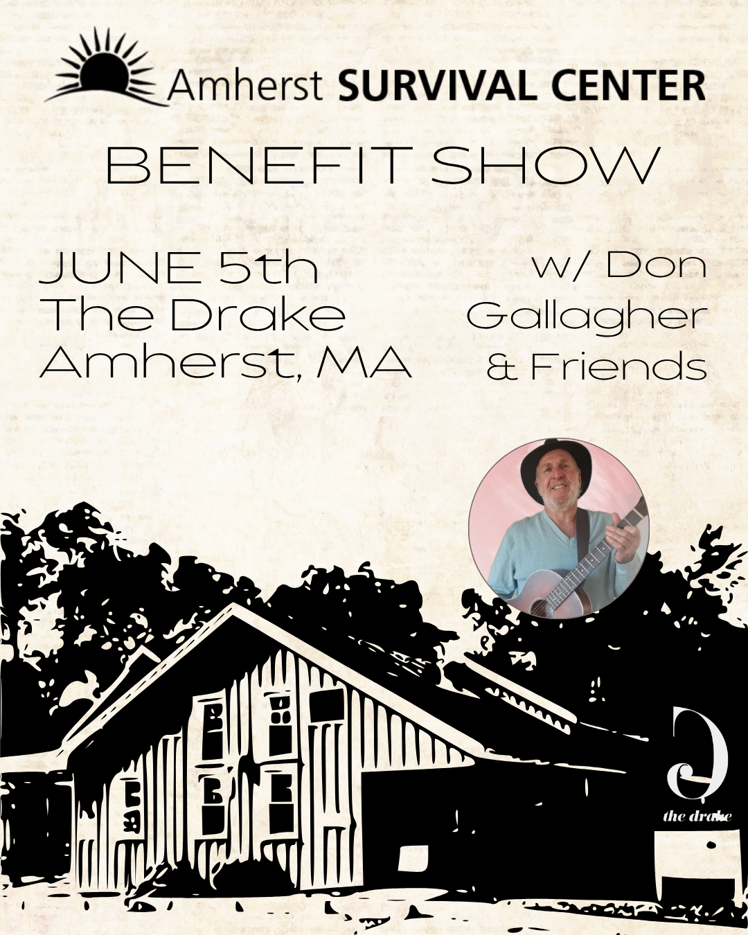 Donnie Gallagher & Friends return to the Drake for a special benefit in support of the Amherst Survival Center. Join us for an evening celebrating music, connection, and community—all while supporting our neighbors in need.